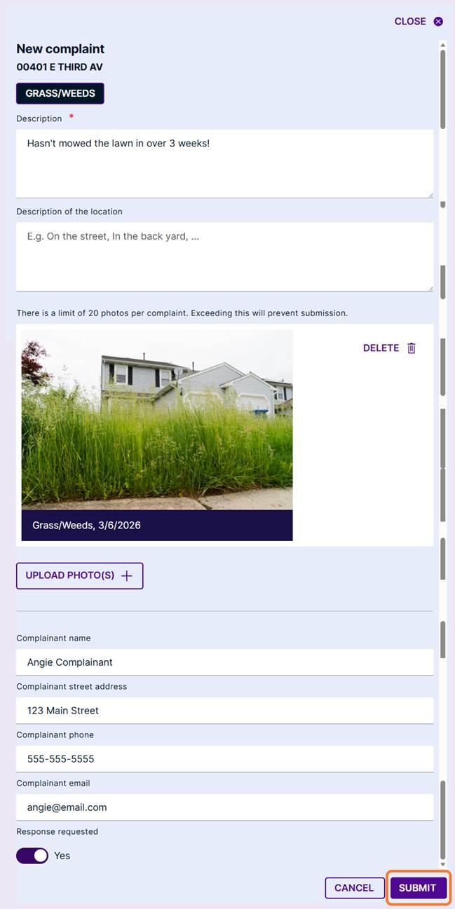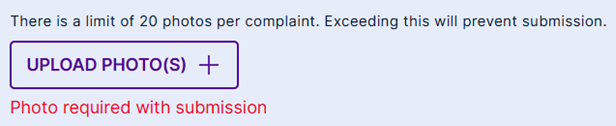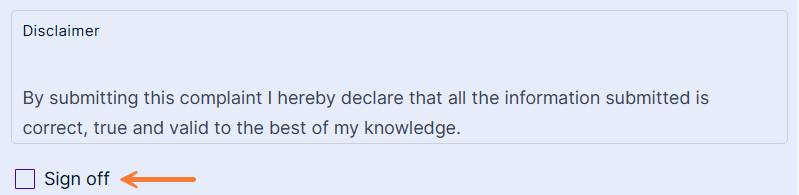 Select the category to which the complaint belongs. Write a short description of the complaint and complete all other required fields (indicated with a red asterisk).