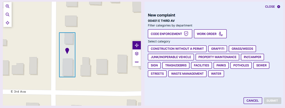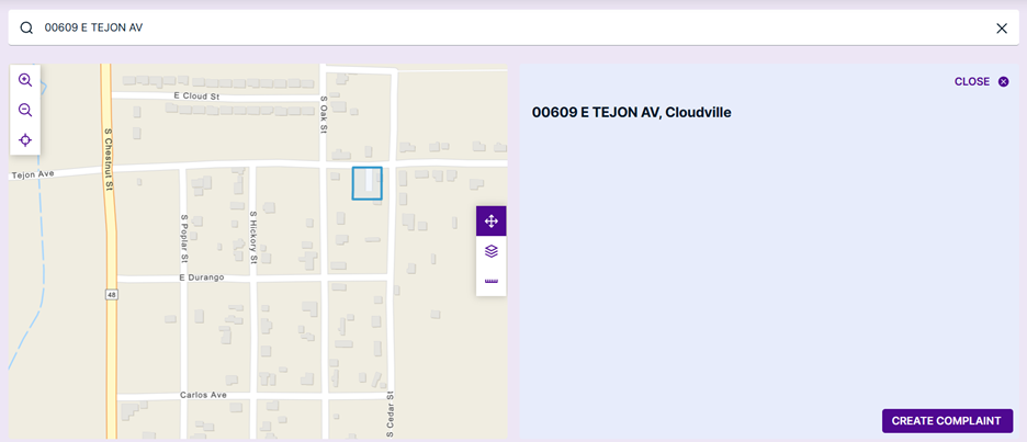 Alternatively, the map is interactive and can be used to select the property. The address will automatically populate in the address field.