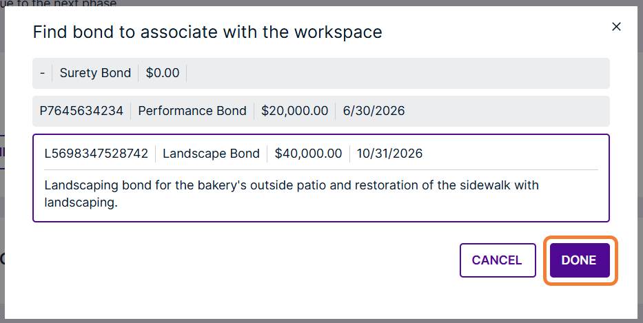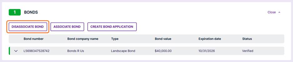 If a bond is required on your application and you already have a bond in Cloudpermit, navigate to the workspace and click the Associate Bond button.