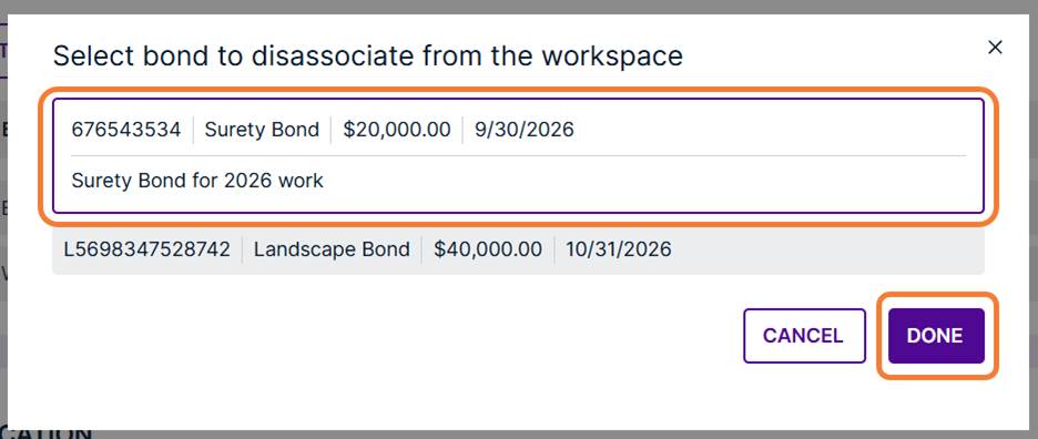 If there is more than one bond associated, select bond to remove and click the Done button.
